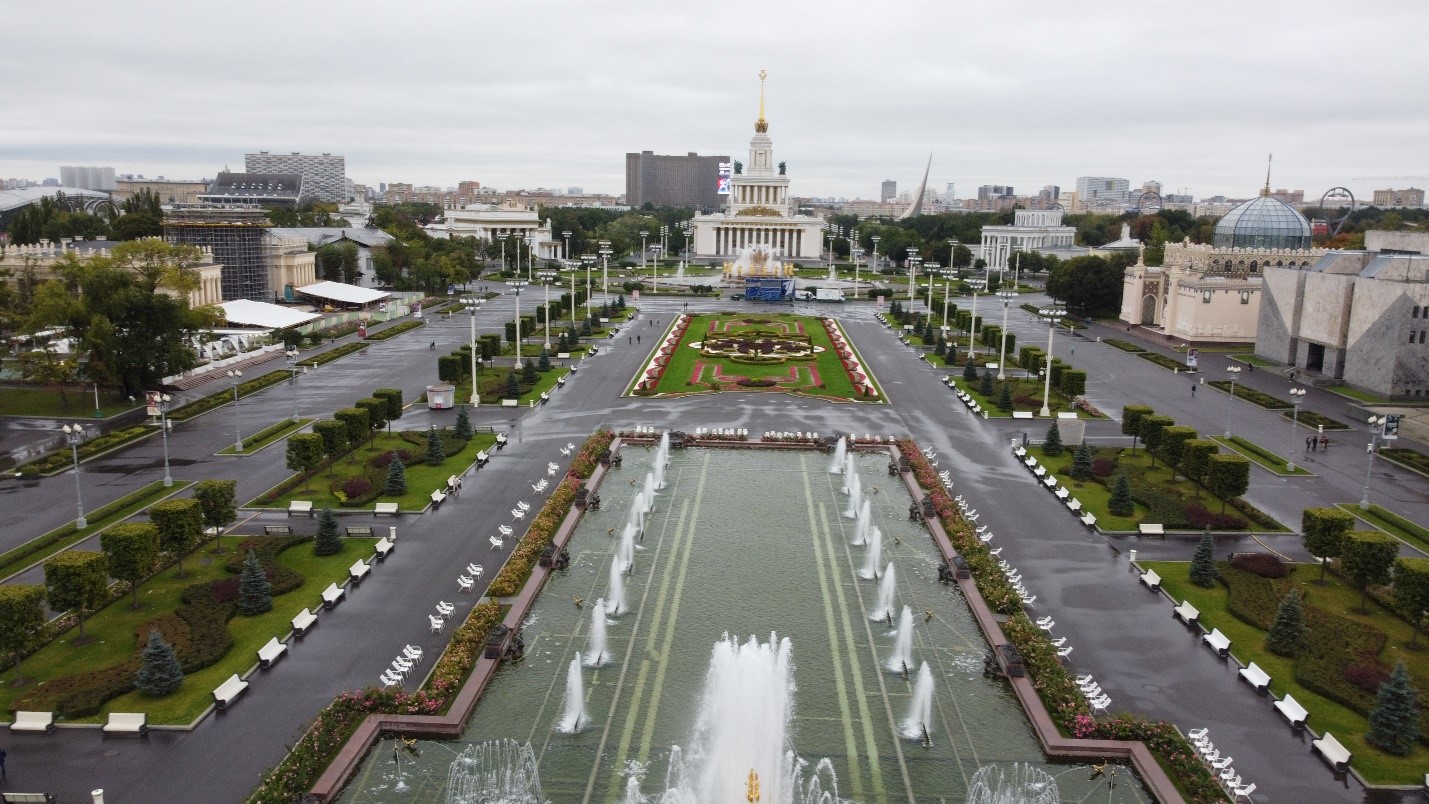 Exhibition of Achievements of National Economy, known by its Russian acronym “VDNH”, is a permanent exhibition center and large park in Moscow. It was built in 1954 initially to illustrate the success of collective farming.