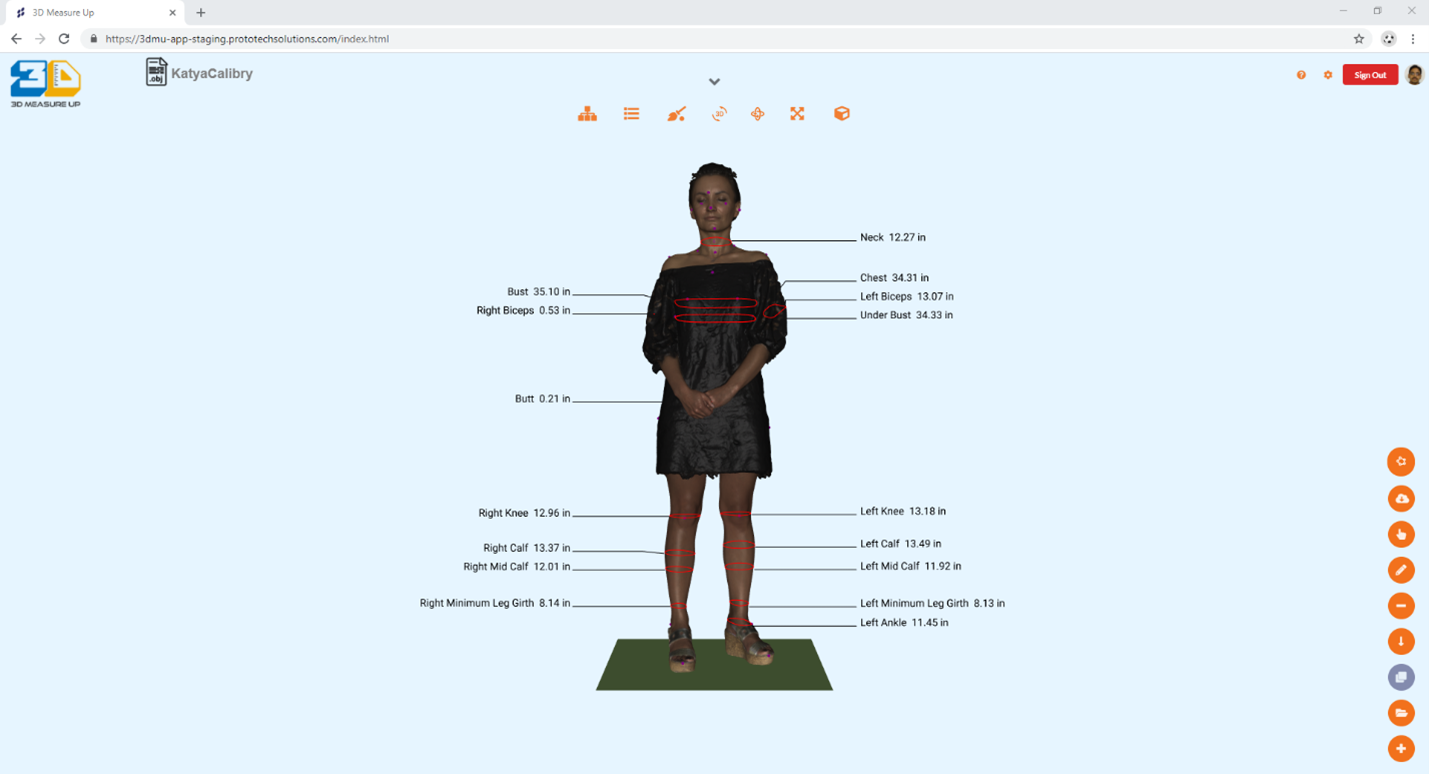 A screenshot from 3D Measure Up platform. A model has been scanned by Calibry 3D scanner. Image source: ProtoTech Solutions