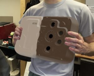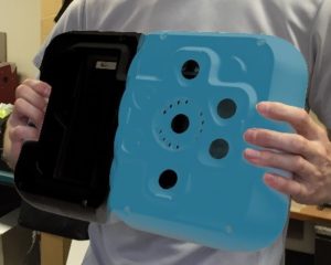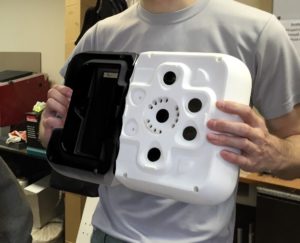 Our new 3D scanner, “Drake”, is made up of two parts: the “head” (cameras and projectors) and the “body” (built-in CPU, touchscreen, battery). Each of these parts is comprised of two halves (the front and the back). There are a few other plastic parts, but the foremost debate was over these four pieces (two in the back and two in the front). At some point the discussion got so heated that a programmer with Photoshop skills volunteered to illustrate different suggestions. The poor man was at his computer for 6 hours with his colleagues behind him screaming “Now try blue and black … nooooo … now try brown and beige … nooooo”.