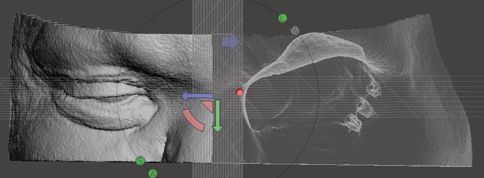 A technician scans the patient’s affected part of the face. Post-processes the scan in Thor3D Suite and exports to Blender and Meshmixer software to develop a custom prosthetic.