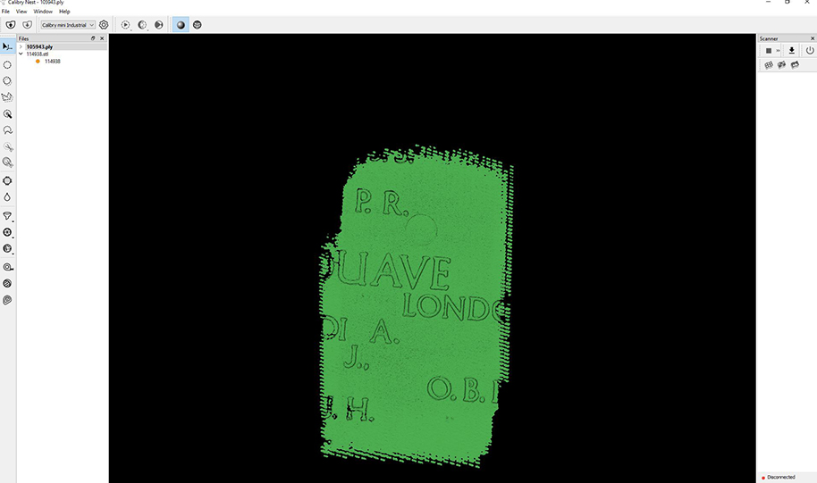 In short: Gala Creations Ltd was asked to correct spelling mistakes in the veterans' names on the Tower Hill Memorial. They used Calibry Mini 3D scanner to digitize the letters.