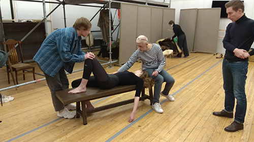 Our goal is clear and simple. The two actors will “die,” and their fellow actors will kick their “corpses.” While I didn’t know the rapport the actors have among themselves, I do feel bad for the pair who will have to play dead, and apparently so does their director. Actors are quite valuable and fragile after all. It’s for this very reason that the theater decided to commission dummies, who can then easily take the abuse, which will be swapped out for actors while the actors themselves are safe backstage.