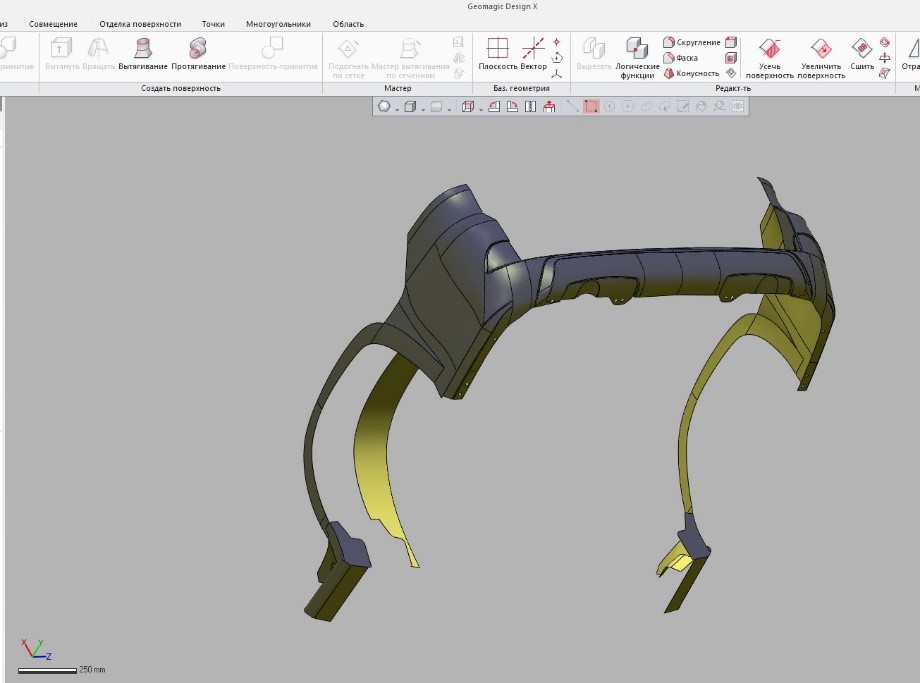 CAD model of the same car bumper after post-processing in Geomagic Design X software